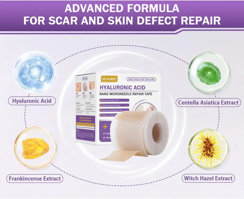 ✅Official Store |SEAGRIL® Hyaluronic Acid Nano Microneedle Repair Tape🏥(Treatment of old and new scars, reduction of surgical scars, stretch marks, keloids, acne, burns, warts, dermatomes and varicose veins)